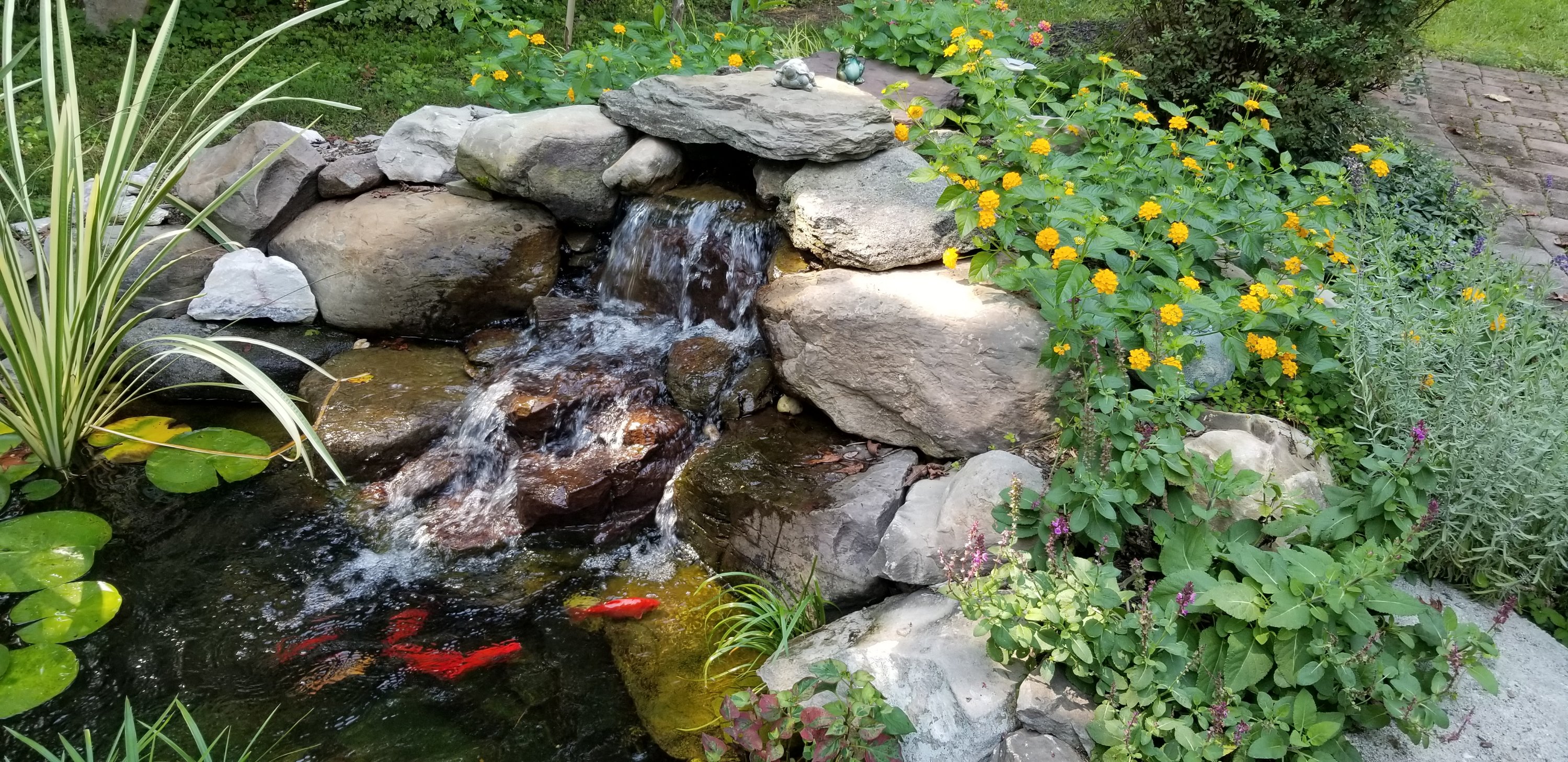 In the midst of these uncertain times, I sought peace. A busy morning, surrounded by loving people, later finding myself at home, thinking of things that aren’t going quite well, I yearned to be in Christ’s creation for a lesson. Pulling up a chair by the fishpond, I quieted my thoughts, and took in the waterfall. It was just what I needed: the moving, soothing sound of water to center me to the goodness of life.