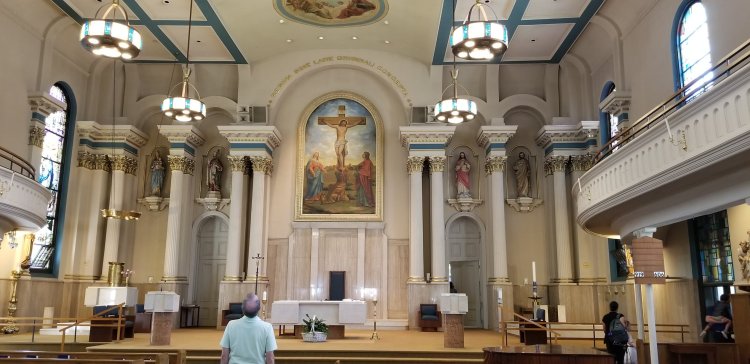 Recently, I went to Mass out of town, at an older and more ornate church. Upon entering the sanctuary, I was struck by all the “stuff” – almost too distracting, too much to take in all at once: high ceilings, balconies, tall marble columns, chandeliers, statues and paintings on the ceiling.