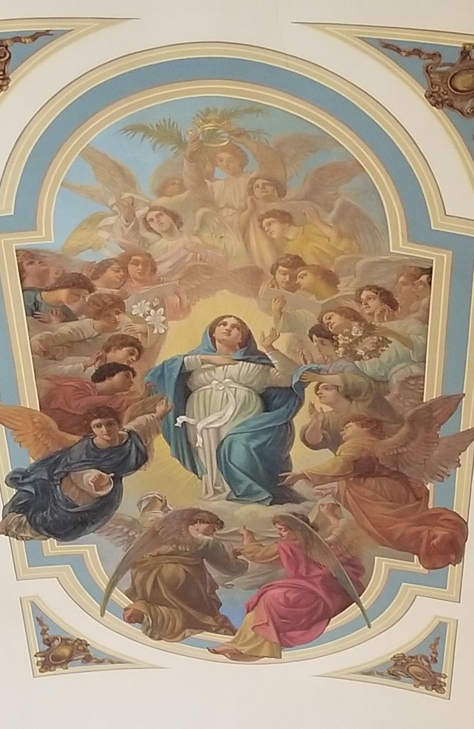 When the small choir began to sing, however, the echoing acoustics were marvelous, engraving a spiritual moment in my heart. As I knelt down during Mass, prayers were lifted high, high up – good thing that the ceiling was so high! The holiness of encountering Christ was fitting to this reverent place, surrounded by scenes of past heroes in faith.