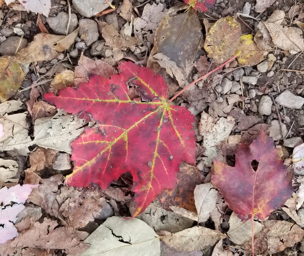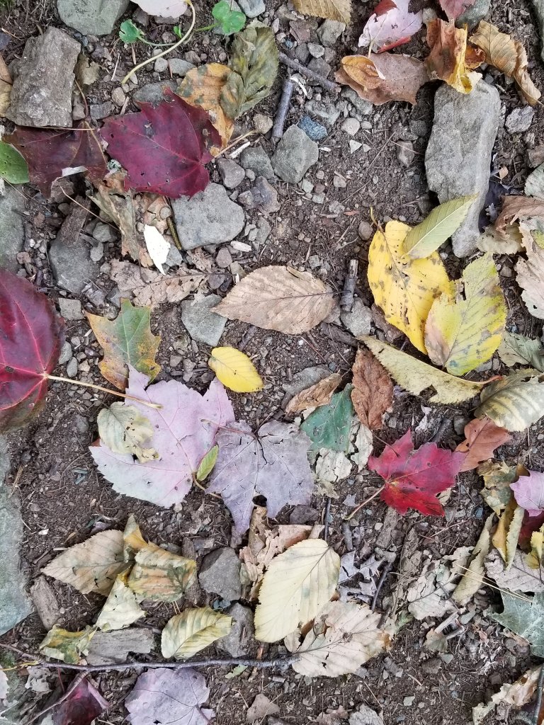 Every rock endured formation, every tree has a history, every leaf a story: a symphony of surrounding life. With each step forward, my heart expands with gratitude for the moment, with awareness of how long this beautiful place has existed. Simple lessons of life’s cycles abound. Death is evident in the fallen trees and the falling leaves. Once green with ample sunshine, mature autumn leaves display their true colors, lose their grip, float to the ground, where they will continue to give life through decay and nourishment to the soil.