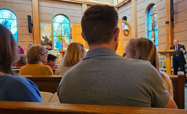 Fr. Mike called little ones to the front of church, for them to go on their way to a special children’s liturgy, where 2 volunteers were ready to teach the little ones about the Gospel story of the day. About 30 children went forward, were blessed, and paraded down the aisle on their way to a classroom. The little girl in front of me remained seated next to her dad, however. I wondered why she didn’t join the others. Maybe she was timid or didn’t really know what to expect if she did go.